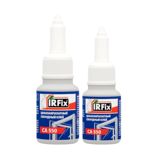 Высококачественный быстродействующий цианоакрилатный однокомпонентный клей IRFix CA 550 моментального схватывания для точного и прочного соединения мелких деталей.