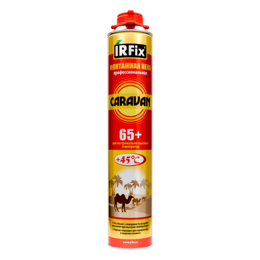 Высококачественная однокомпонентная полиуретановая монтажная пена летнего применения IRFix CARAVAN в аэрозольной упаковке 800мл для жаркого климата. Специальная уникальная формула позволяет использовать пену при температуре воздуха +45°.