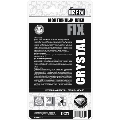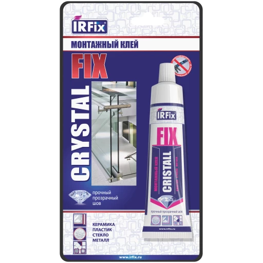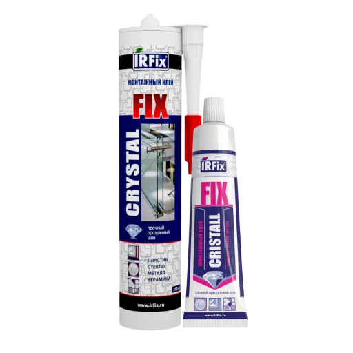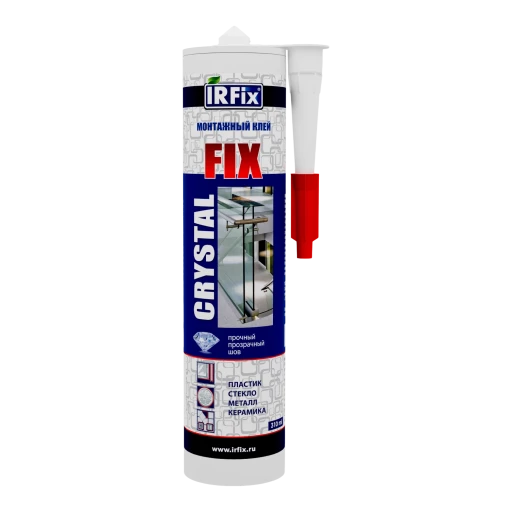 Монтажный клей на основе синтетического каучука с высокой начальной прочностью IRFix CRYSTAL FIX. Предназначен для быстрого и прочного соединения различных материалов – дерева, металла, пластика, керамики, резины и стекла. Обеспечивает мгновенную фиксацию и высокую начальную прочность, что делает его идеальным для вертикальных поверхностей и монтажных работ без подпорок.