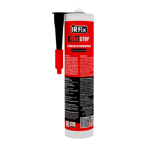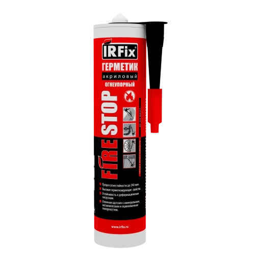 Однокомпонентный огнеупорный акриловый герметик IRFix FIRESTOP на водной основе, идеально препятствует распространению огня, дыма и токсичных газов через щели и соединения, обеспечивая дополнительную огнезащиту межэтажных перекрытий, стен, перегородок и узлов сопряжения строительных конструкций.