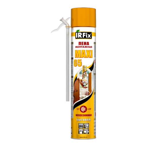 Высококачественная однокомпонентная полиуретановая монтажная пена всесезонного применения IRFix 65 MAXI в аэрозольной упаковке 850мл с трубкой-адаптером. Использование монтажного пистолета не требуется.