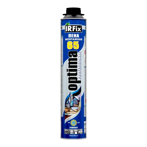 Высококачественная однокомпонентная полиуретановая монтажная пена зимнего применения IRFix OPTIMA в аэрозольной упаковке 800мл. Используется с применением специального монтажного пистолета.