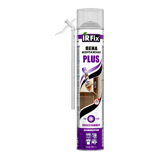 Высококачественная однокомпонентная полиуретановая монтажная пена всесезонного применения IRFix PLUS в аэрозольной упаковке 750мл с трубкой-адаптером. Использование монтажного пистолета не требуется.