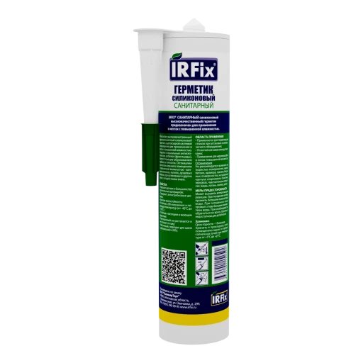 Высококачественный однокомпонентный силиконовый санитарный герметик IRFix SANITARY, отверждающийся за счет влаги воздуха. Предназначен для герметизации швов и стыков в помещениях с повышенной влажностью – ванных комнатах, кухнях, душевых и санузлах. Содержит противогрибковые добавки (фунгициды), предотвращающие образование плесени и грибка. Образует эластичный, влагостойкий и долговечный шов, устойчивый к моющим средствам, ультрафиолету и перепадам температуры. Отлично сцепляется со стеклом, керамикой, эмалью, фарфором, алюминием и пластиком.