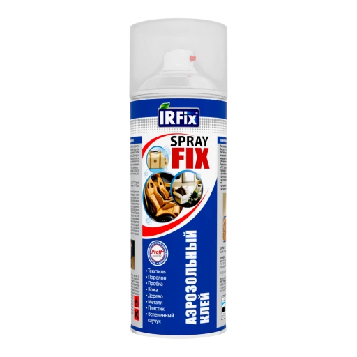 Универсальный каучуковый клей IRFix SPRAY FIX в аэрозольной форме, специальноразработанный для склеивания тканей, войлока, поролона, бумаги идругих лёгких материалов.