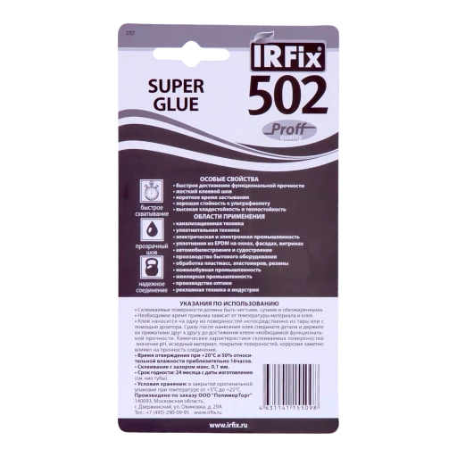 Высококачественный быстродействующий цианоакрилатный однокомпонентный клей IRFix SUPER GLUE моментального схватывания для точного и прочного соединения мелких деталей.