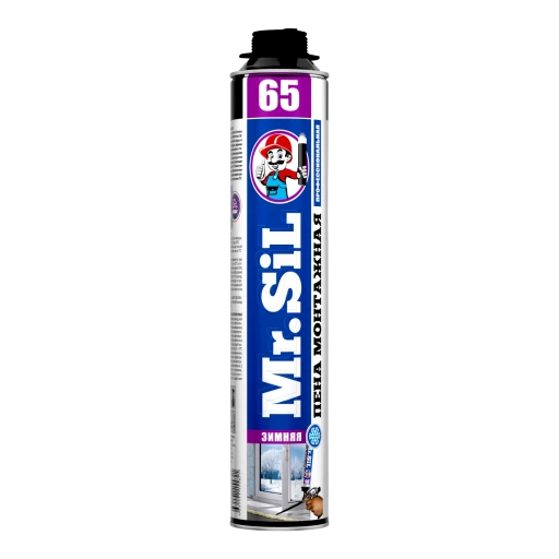 Высококачественная однокомпонентная полиуретановая монтажная пена зимнего применения Mr.Sil 65 зима в аэрозольной упаковке 750мл. Используется с применением специального монтажного пистолета.