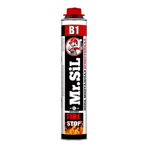Однокомпонентная высококачественная огнестойкая монтажная пена Mr.Sil B1. Идеальное решение для конструкций с повышенными требованиями к огнестойкости. Обладает однородной мелкопористой структурой и огнестойкость до 240 минут.