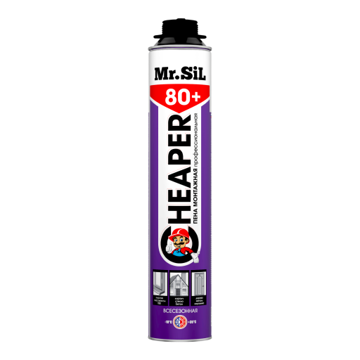 Высококачественная однокомпонентная полиуретановая монтажная пена всесезонного применения Mr.Sil CHEAPER 80+ в аэрозольной упаковке 750мл. Используется с применением специального монтажного пистолета.